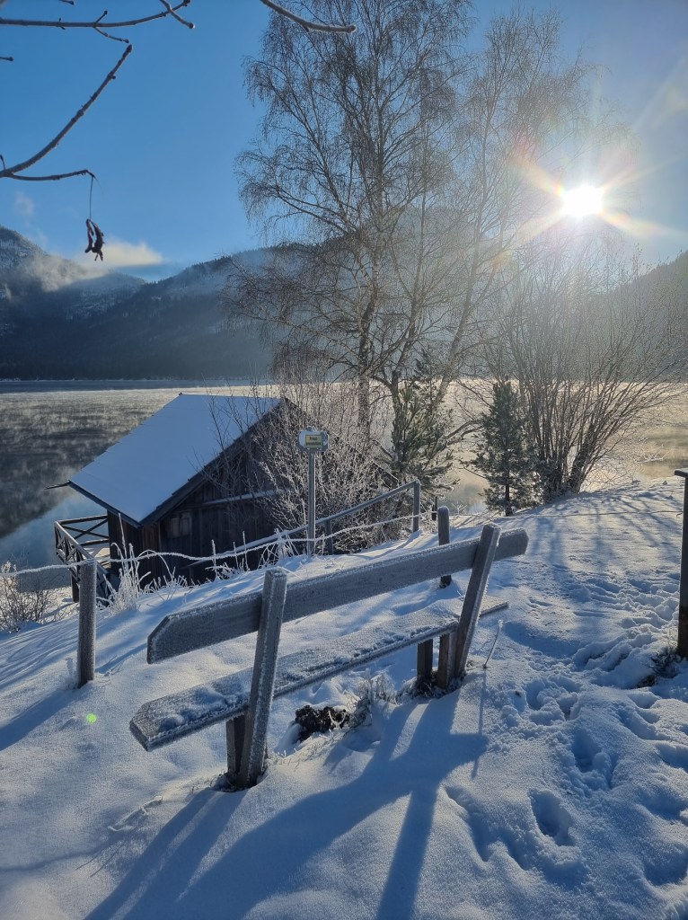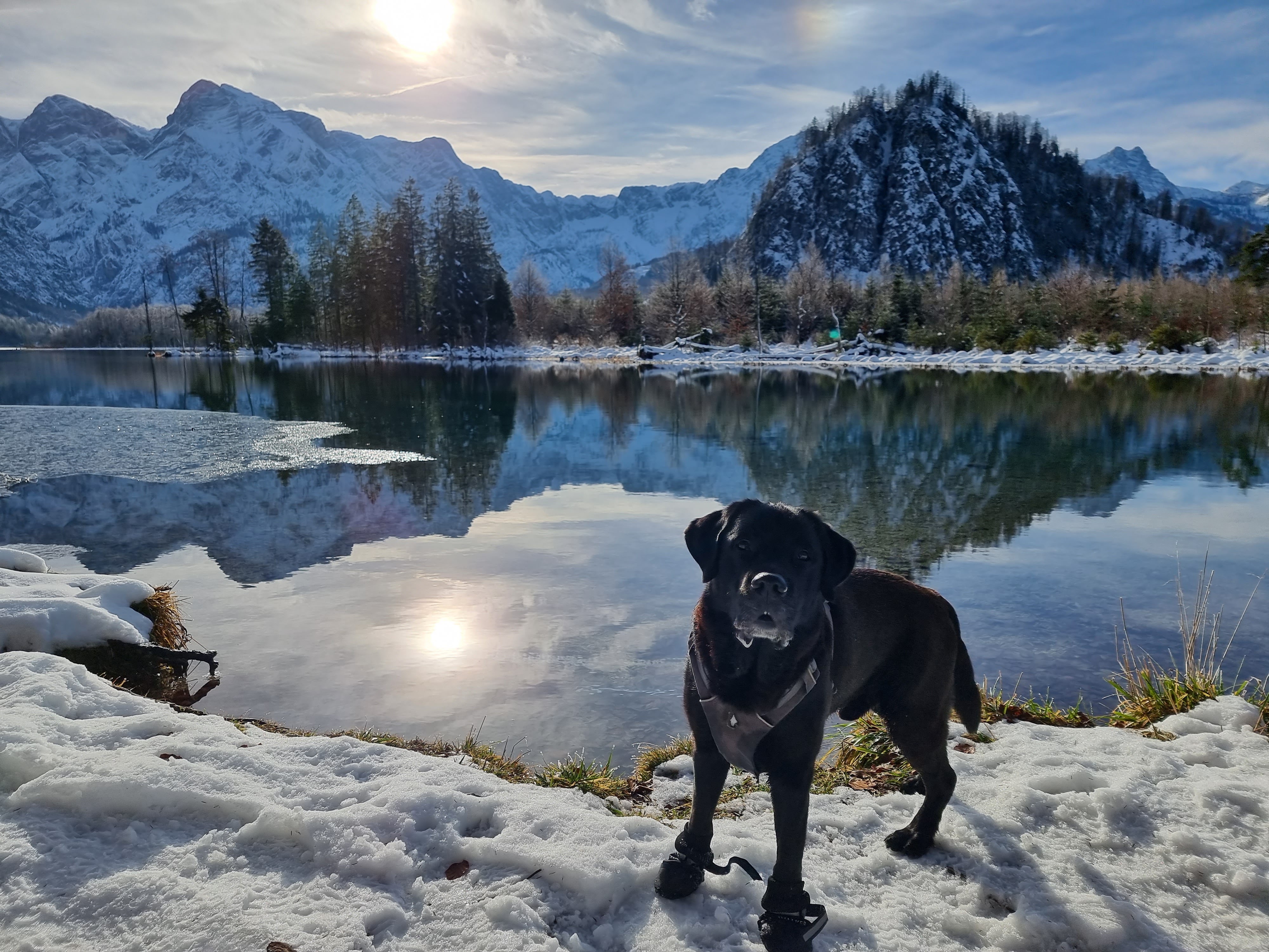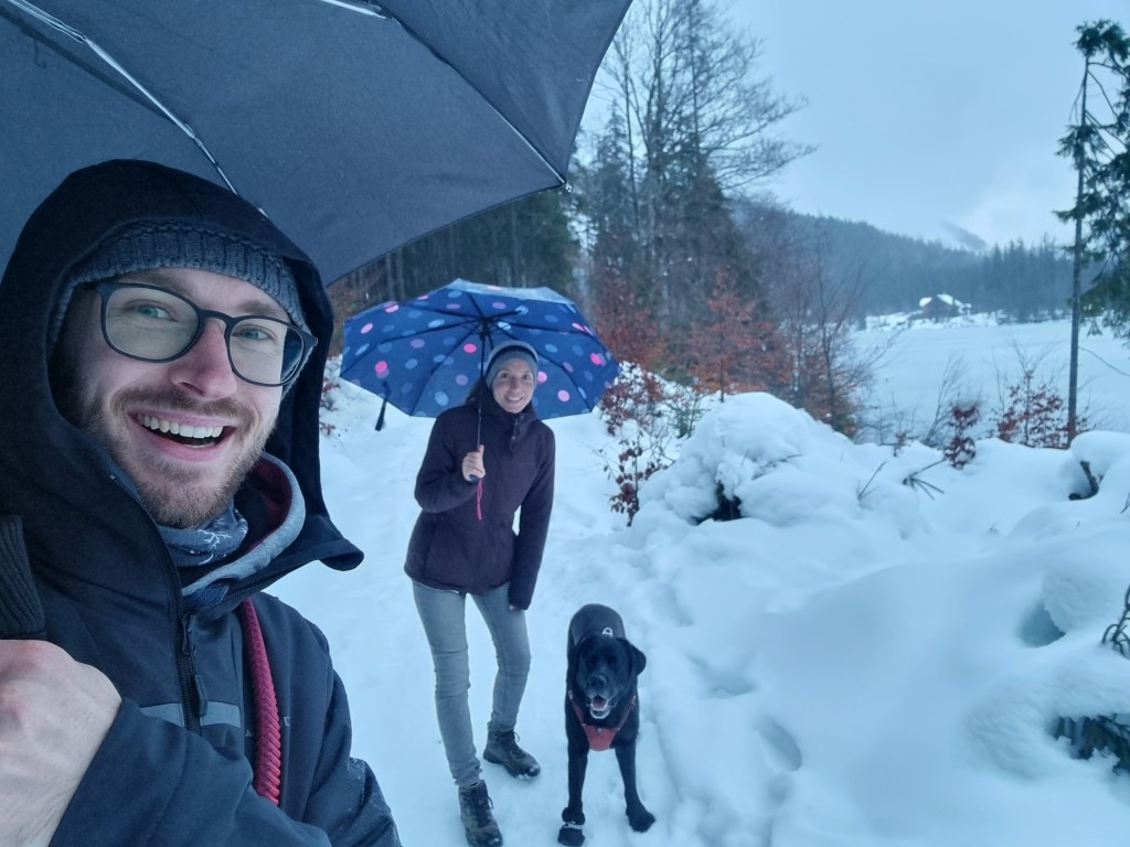 Herbert Grönemeyer fragt sich, ab wann ein Mann ein Mann ist. Mama und ich fragen uns, ab wann eine Tradition eine Tradition ist. Laut Wikipedia bezeichnet das Wort Tradition eine Weitergabe von Handlungsmustern, Überzeugungen, Glaubensvorstellungen oder Anderem zwischen Gruppen oder Generationen. Mama gibt mir zwar nichts weiter, geschweige denn übernehme ich ihre Handlungsmuster, aber wir beide sind überzeugt davon und glauben fest daran, dass ein Kurzurlaub im Winter im Ausseerland der Seele gut tut und das Kind in einem erwachen lässt. Da es letztes Jahr einfach so traumhaft schön war, haben wir nun dieses Jahr wieder in der Vorweihnachtszeit ein paar Tage in Bad Aussee verbracht. Ob man das nun schon als Tradition bezeichnen will oder nicht, wir werden es auf alle Fälle zu unserer Tradition machen und auch die nächsten Jahre hinfahren. Mama und Papa tanken eine ordentliche Portion Weihnachtsstimmung und ich tobe mich in der traumhaften Kulisse aus. Da es auf diesem Fleckchen Erde immer kälter ist, als rundherum ist die Schneewahrscheinlichkeit wirklich verdammt hoch und wenn man dann noch das Wetterglück auf seiner Seite hat, findet man sich schnell in einem Winterwunderland wieder. Winterurlaub im Ausseerland heißt für uns verschneite Spaziergänge um meine Lieblingsseen und durch Schnee stapfen in einer menschenleeren Landschaft. Das und die gute Luft machen mich immer so verdammt müde. Meine Mittagsschläfchen arten häufig etwas aus und es kommt nicht selten vor, dass sich einer von meinen zweibeinigen Mitreisenden dazulegt und mit mir um die Wette schnarcht.
