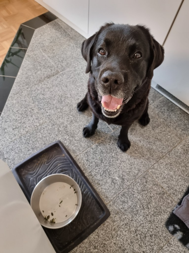 Die Zeit abends zu dritt vergeht dann leider wie im Flug – es wird gespielt, gegessen und gekuschelt bzw. werde ich von allen Seiten gestreichelt und schwups gehts auch schon wieder ins Bett, damit wir halbwegs fit sind, wenn um 05:00 der Wecker klingelt. Mama und ich zeigen uns nämlich mit Papa solidarisch und drehen nun bereits gaaaanz frühmorgens unsere erste Runde. So vergehen momentan die Tage und der Alltag hat uns wieder komplett verschlungen. So schnell, wie ich jetzt mein Frühstück verschlingen werde.